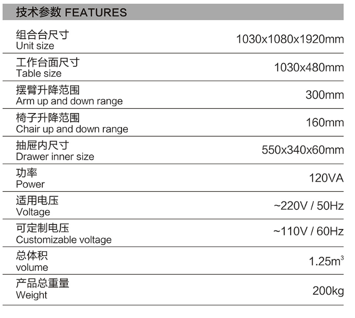 CS-188A Ophthalmic Unit Combined Table Series